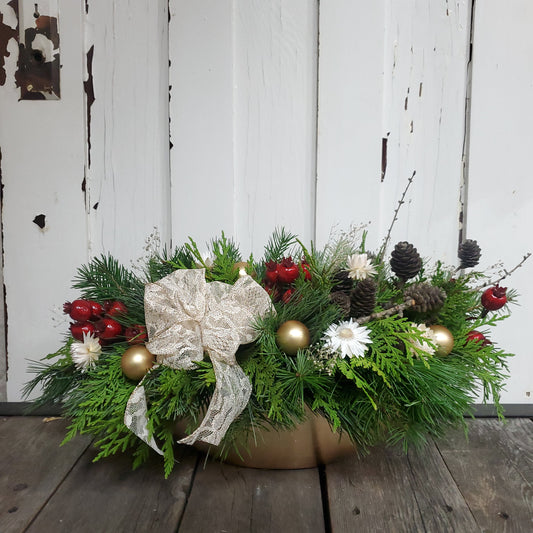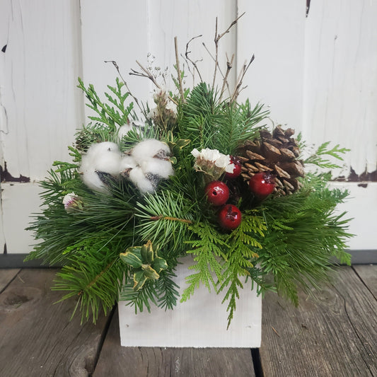 Centerpiece/Mantel Arrangement in Long Wooden Box